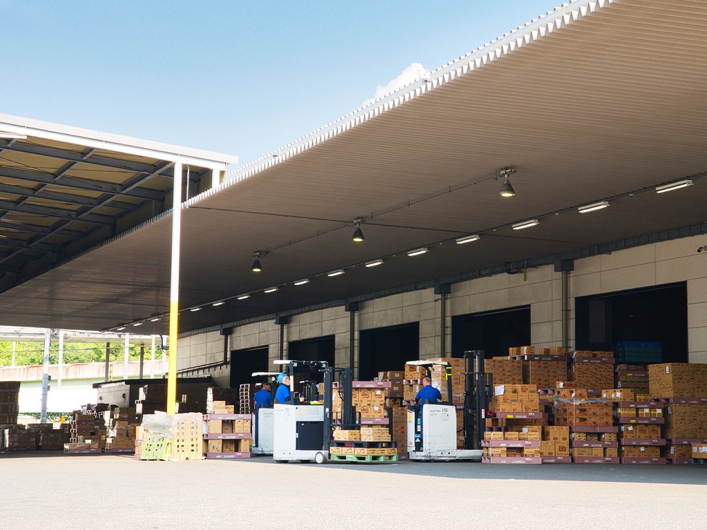 全ての積み込みはフォークリフトで行い、ドライバーの身体への負担を軽減するだけでなく、確実な積載を実現。
